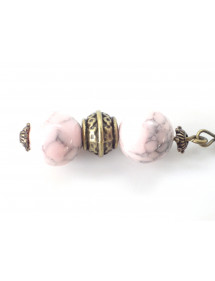 Osa sperimentare l'inaspettata morbidezza del rosa con questa creazione artigianale di ThurColas Création. Questi orecchini unici, interamente realizzati a mano, uniscono la vivacità di una pietra colorata all'eleganza di un design accurato, per un gioiello espressivo, femminile e delicatamente simbolico. Protagonista di questa creazione: il turchese ricostituito tinto di rosa, una pietra composta da frammenti naturali, riuniti e poi colorati per rivelare una tonalità morbida, vibrante e decisamente moderna. Il suo rosa luminoso, a volte venato da linee più scure, evoca sia la freschezza floreale che il risveglio delle emozioni. Anche se colorato, questo turchese conserva la sua aura di pietra protettiva, portatrice di benevolenza, creatività e apertura del cuore. Per mettere in risalto questa tonalità morbida e originale, è accompagnata da perle tibetane finemente lavorate e coppe in ottone bronzo antico. Questo contrasto tra il rosa acceso e l'ottone patinato crea un equilibrio armonioso tra scintillio e profondità, tra energia gioiosa e calore antico. Il montaggio su ganci francesi in ottone garantisce una vestibilità confortevole e una finitura raffinata. L'ottone, forte e leggero, si sposa perfettamente con l'estetica fresca e femminile della pietra, per un gioiello che si indossa con naturalezza ed eleganza. Con ThurColas Creation, indossa un gioiello artigianale unico, realizzato con passione, e lasciati ispirare dall'energia delicata e luminosa del rosa tinto di turchese ricostituito. Stile: Classico, chic, etnico, bohémien Uncinetto: francese Altezza: 50 mm Perline: 10 mm Materiali: Turchese resituato, rosa, ottone, bronzo antico Colore: rosa Colore del metallo: bronzo