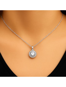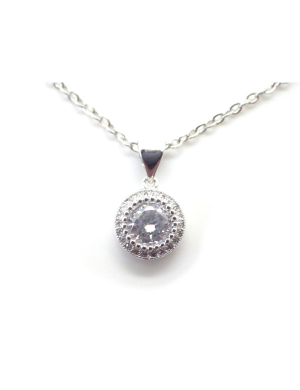 Collana con zircone a forma di alone in argento – pendente rotondo da 13 mm – catena da 45 cm + estensione