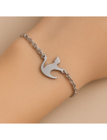 Discreto ed elegante, questo bracciale in acciaio inossidabile presenta una silhouette di gatto con finitura argento. La sua lunghezza di 17 cm offre un look delicato e femminile, perfetto per l'uso quotidiano. Realizzato a mano nel nostro laboratorio in Anjou, piacerà agli amanti dei gatti e dei gattini.