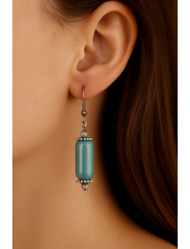 Materiali: Pendente in perline di porcellana verde, perline e componenti in ottone argentato, ganci e perni in acciaio inossidabile.