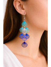 Ispirati alla bellezza dei fondali marini, questi originali orecchini giocano con la luce attraverso una delicata sfumatura di blu turchese e viola. Ogni conchiglia stilizzata è delicatamente tagliata in acciaio inossidabile, un materiale rinomato per la sua robustezza e resistenza all'ossidazione. L'insieme forma un gioiello arioso, leggero e fluido, che ondeggia delicatamente a ogni movimento. La finitura lucida riflette le sfumature del metallo e accentua la brillantezza della sfumatura. Questi orecchini, lunghi 75 mm con un pendente da 55 mm, aggiungono un tocco marino chic a qualsiasi outfit, estivo o elegante. Realizzati con cura nel nostro laboratorio in Angiò, incarnano il know-how artigianale francese e l'attenzione ai dettagli. Un gioiello moderno e poetico al tempo stesso, perfetto per illuminare il viso evocando la dolcezza delle rive.