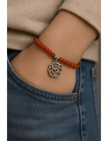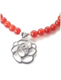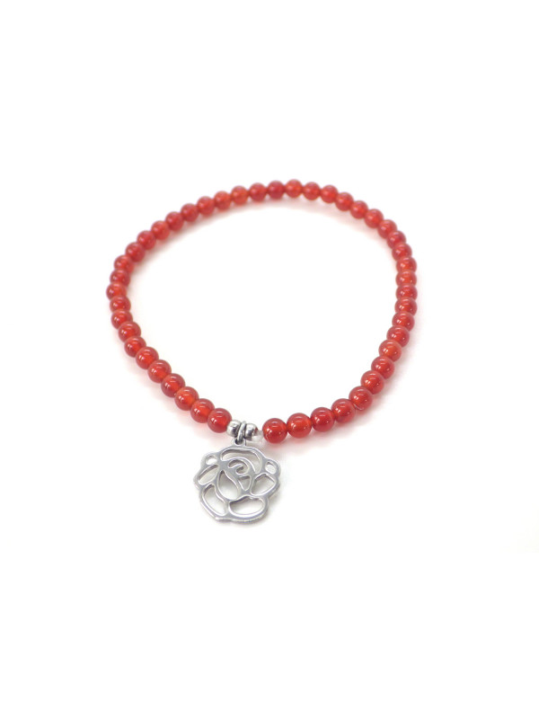 Bracciale in corniola da 4 mm con pendente a forma di fiore - Acciaio inossidabile, creazione artigianale francese