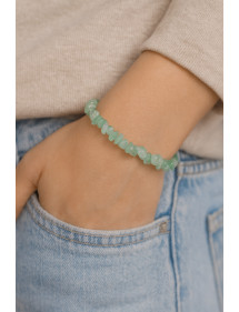 Questo bracciale, realizzato con autentiche schegge di avventurina verde, affascina per la freschezza e la morbidezza della sua tonalità naturale. Composto interamente da pietre pregiate, non contiene parti metalliche, garantendo una vestibilità comoda e ipoallergenica. Con una lunghezza di 19 cm, si adatta comodamente alla maggior parte dei polsi grazie alla sua montatura elastica. Interamente realizzato a mano nel nostro laboratorio in Angiò, questo gioiello artigianale incarna l'autentica bellezza delle pietre naturali e dell'artigianato francese. L'avventurina verde è nota per promuovere la serenità e l'equilibrio emotivo.