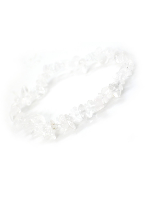 Questo bracciale è composto da schegge di quarzo bianco naturale levigate, infilate su un cordino elastico robusto e resistente.