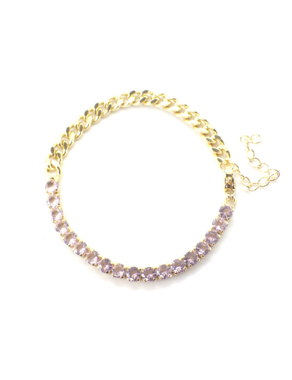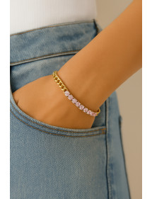 Bracciale in acciaio inossidabile placcato oro 18 carati impreziosito da zirconi rosa sfaccettati per una brillantezza delicata e luminosa.