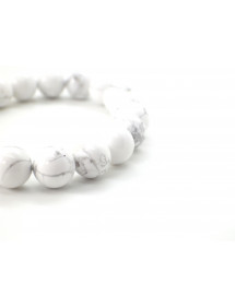 Questo bracciale è realizzato con autentiche perle di howlite bianca naturale da 10 mm provenienti dal Canada, infilate a mano su un resistente cordino elastico, con una testa di Buddha in ottone con finitura bronzo anticato. La sua lunghezza di 19 cm si adatta a un polso femminile standard. Ogni pezzo è realizzato a mano in Francia, nel nostro laboratorio in Anjou, con particolare attenzione ai materiali e alle finiture. Questo gioiello, dallo stile luminoso e morbido, mette in risalto le delicate venature della pietra naturale.