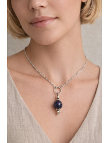 Questo bracciale è realizzato con autentiche perle di diaspro imperiale blu naturale da 10 mm provenienti dall'Indonesia, infilate a mano su un resistente cordino elastico, con una testa di Buddha in ottone con finitura bronzo anticato. La sua lunghezza di 19 cm si adatta a un polso femminile standard. Ogni pezzo è realizzato a mano in Francia, nel nostro laboratorio in Anjou, con particolare attenzione ai materiali e alle finiture. Questo gioiello si distingue per le sue eleganti tonalità blu nuvolate, tipiche del diaspro imperiale.