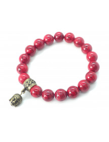 Bracciale in turchese ricostituito tinto rosso con testa di Buddha in ottone bronzato - 10 mm - 19 cm