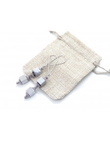 Gli orecchini misurano 75 mm di lunghezza totale e 40 mm per la parte con perline. Sono composti da perline quadrate di ematite color cromo, una pietra naturale densa e lucente, estratta principalmente in Brasile e apprezzata per la sua intensa lucentezza metallica. I copriperline sono in ottone placcato argento, mentre i cerchi allungati, sottili e robusti sono in acciaio inossidabile. Ogni paio è realizzato a mano nel nostro laboratorio ad Anjou, in Francia.