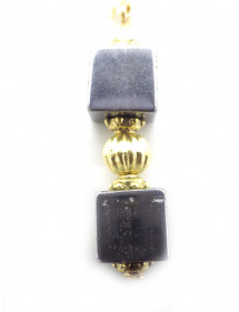 Questi orecchini combinano la forza metallica dell'ematite naturale con il caldo bagliore dell'oro. Cubi di ematite, una pietra semipreziosa grigio acciaio, sono abbinati a perle e steli in ottone placcato oro, sospesi a lunghi cerchi in acciaio inossidabile placcato oro 18 carati. Un gioiello elegante e luminoso, realizzato a mano nel nostro laboratorio di Anjou, perfetto per impreziosire un outfit chic o contemporaneo.