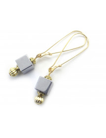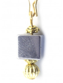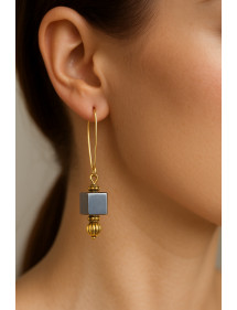 Questi orecchini fondono con delicatezza la potenza minerale dell'ematite naturale brasiliana con la brillantezza del metallo placcato oro. La loro silhouette allungata ed elegante, montata su delicati cerchi in acciaio inossidabile placcato oro 18 carati, mette in risalto un cubo di ematite abbinato a una perla d'oro striata. Un gioiello raffinato, contemporaneo e luminoso, ideale per illuminare i tuoi outfit da giorno o da sera. Ogni paio è realizzato a mano nel nostro laboratorio artigianale francese ad Anjou.