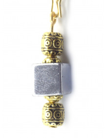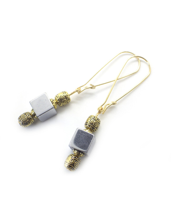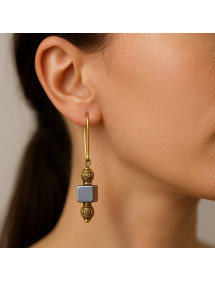 Questi orecchini combinano la lucentezza metallica dell'ematite naturale con la delicata bellezza delle perle d'oro intagliate a mano. I loro cerchi allungati e grandi, placcati in oro 18 carati, creano una silhouette elegante e allungata, perfetta per slanciare la scollatura. Un gioiello dallo stile contemporaneo e senza tempo, realizzato a mano nel nostro laboratorio francese ad Anjou. Lunghezza totale: 60 mm. Composizione: ematite naturale del Brasile, perle di ottone intagliate a mano, montate su grandi cerchi in acciaio inossidabile placcato oro 18 carati. Finitura lucida e resistente. Realizzato a mano in Francia, nel nostro laboratorio in Anjou.