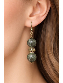 Questi orecchini combinano la lucentezza metallica dell'ematite naturale con la delicata bellezza delle perle d'oro intagliate a mano. I loro cerchi allungati e grandi, placcati in oro 18 carati, creano una silhouette elegante e allungata, perfetta per slanciare la scollatura. Un gioiello dallo stile contemporaneo e senza tempo, realizzato a mano nel nostro laboratorio francese ad Anjou. Lunghezza totale: 60 mm. Composizione: ematite naturale del Brasile, perle di ottone intagliate a mano, montate su grandi cerchi in acciaio inossidabile placcato oro 18 carati. Finitura lucida e resistente. Realizzato a mano in Francia, nel nostro laboratorio in Anjou.