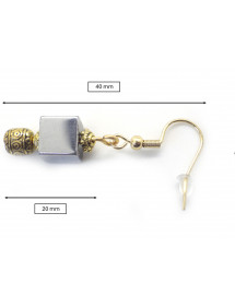 Eleganti e raffinati, questi orecchini mettono in risalto la lucentezza metallica dell'ematite naturale, abbinata ai riflessi dorati delle perle finemente tagliate. I ganci placcati oro standard garantiscono comfort e leggerezza, rendendoli adatti sia all'uso quotidiano che alle occasioni speciali. Ogni gioiello è progettato e realizzato a mano nel nostro laboratorio francese ad Anjou.