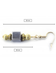Orecchini placcati oro in ematite naturale e perle scanalate – ganci standard – 50 mm