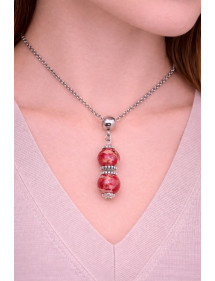 Collana da donna con pendente in perla di diaspro imperiale rosso e perline tibetane