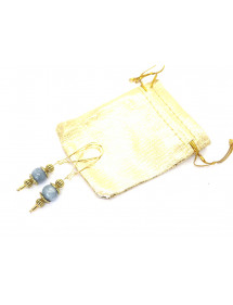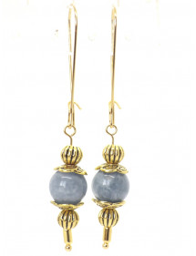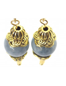 Orecchini Thurcolas in stile vintage in quarzo blu montati su cerchi dorati