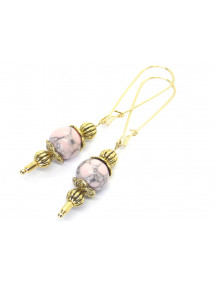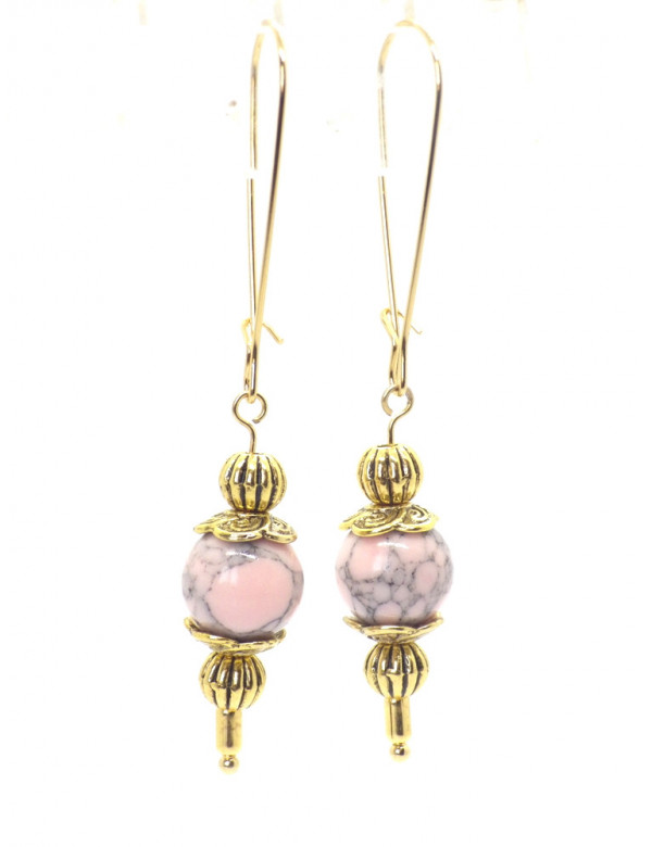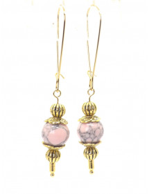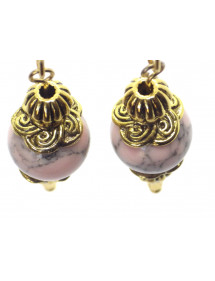 Orecchini Thurcolas in stile vintage in turchese ricostituito rosa montati su cerchi dorati