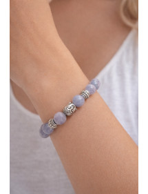Bracciale etnico Zen Thurcolas da donna in perle di quarzo blu e Buddha in metallo argentato