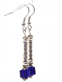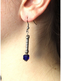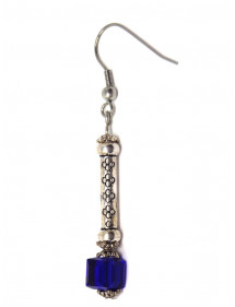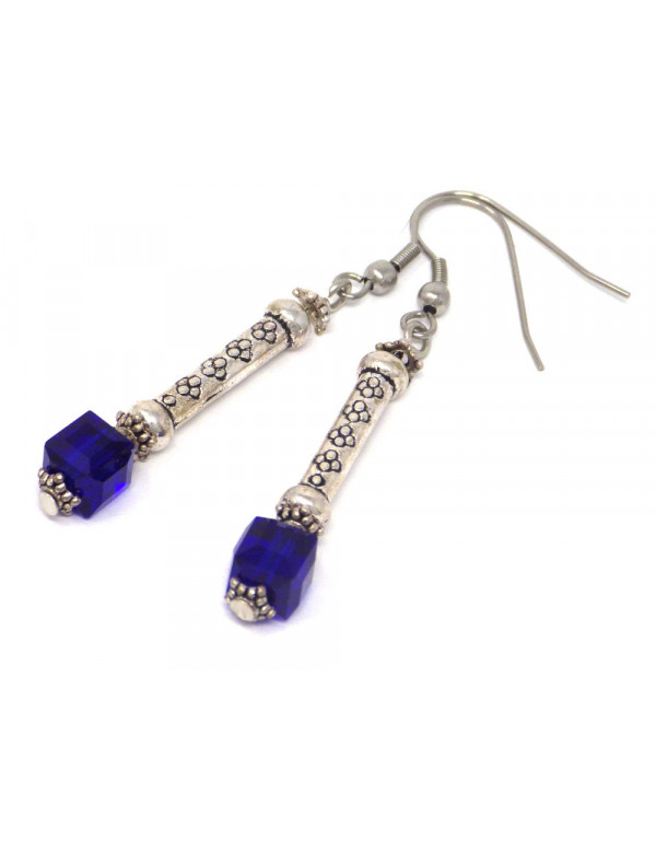 Orecchini a colonna blu scuro in vetro e acciaio inossidabile
