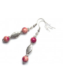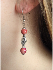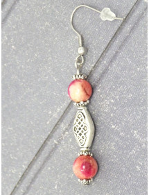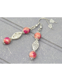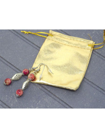 Orecchini etnici Zen con perle naturali di giada rossa e verde e perle tibetane