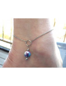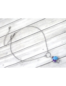 Cavigliera da donna in acciaio inossidabile con pendente in perle di giada tinto di viola e blu