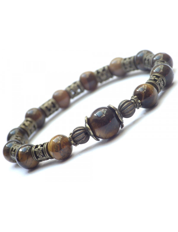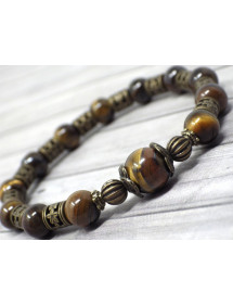 Magnifico bracciale Vintage in bronzo antico. Realizzato a mano, questo bracciale è realizzato con cura e composto da occhio di tigre marrone (pietra semipreziosa) e bronzo antico. Il tutto è montato su un filo elastico resistente e di qualità. Stile: Boemia, vintage Lunghezza: 19 cm Perline: occhio di tigre marrone (pietra semipreziosa) Materiali: bronzo antico Colore: marrone Colore metallo: bronzo antico