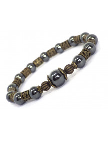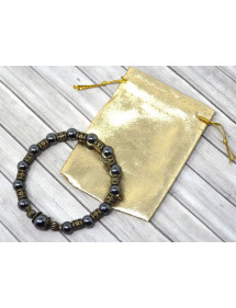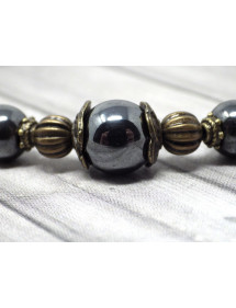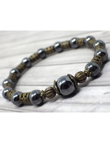 Magnifico bracciale Vintage in bronzo antico. Prodotto artigianalmente, questo bracciale è realizzato con cura e composto da ematite nera (pietra semipreziosa) e bronzo antico. Il tutto è montato su un filo elastico resistente e di qualità. Stile: Boemia, vintage Lunghezza: 19 cm Perline: ematite nera (pietra semipreziosa) Materiali: bronzo antico Colore: nero Colore metallo: bronzo antico Le nostre perle sono in vera ematite e in ottone color bronzo antico, il tutto è assemblato su un filo elastico resistente e di qualità, l'ematite essendo una pietra naturale, ogni perla è unica nel colore quindi ci possono essere leggere differenze con il modello presentato, ognuna il modello è infatti unico. Questo gioiello viene fornito con una custodia regalo color oro gratuita.