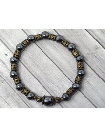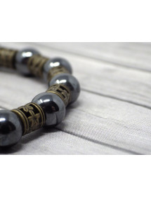 Magnifico bracciale Vintage in bronzo antico. Prodotto artigianalmente, questo bracciale è realizzato con cura e composto da ematite nera (pietra semipreziosa) e bronzo antico. Il tutto è montato su un filo elastico resistente e di qualità. Stile: Boemia, vintage Lunghezza: 19 cm Perline: ematite nera (pietra semipreziosa) Materiali: bronzo antico Colore: nero Colore metallo: bronzo antico