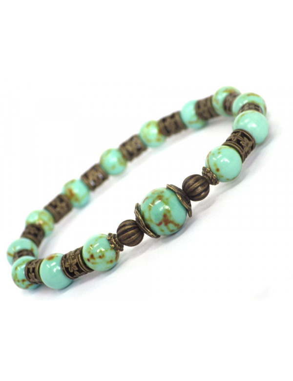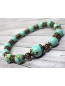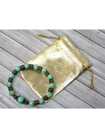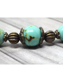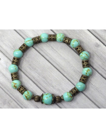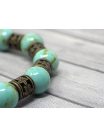 Magnifico bracciale Vintage in bronzo antico. Realizzato a mano, questo bracciale è realizzato con cura e composto da turchese blu ricostituito (pietra semipreziosa) e bronzo antico. Il tutto è montato su un filo elastico resistente e di qualità. Stile: Boemia, vintage Lunghezza: 19 cm Perline: turchese ricostituito blu (pietra semipreziosa) Materiali: bronzo antico Colore: blu Colore metallo: bronzo antico