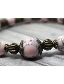Magnifico bracciale Vintage in bronzo antico. Realizzato a mano, questo braccialetto è realizzato con cura e composto da turchese rosa ricostituito (pietra semipreziosa) e bronzo antico. Il tutto è montato su un filo elastico resistente e di qualità. Stile: Boemia, vintage Lunghezza: 19 cm Perline: turchese ricostituito rosa (pietra semipreziosa) Materiali: bronzo antico Colore: rosa Colore metallo: bronzo antico