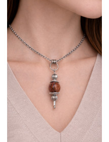 Collana da donna in acciaio inossidabile Thurcolas stile vintage con ciondolo in diaspro rosso Picasso